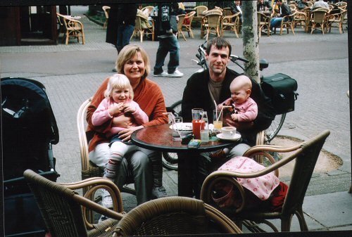 Så var det snart slut med ene-livet, for der mødte jeg Ludo ( hollandsk mand og navn). Vi lærte hinanden at kende i 1998, fik Signe i år 2000 og Mathilde i år 2003. Vi blev gift i 2000, og hedder forøvrigt alle 4 , Gijsbrechts Husum til efternavn. Indtil videre er det, Ludo og pigerne, uden konkurrence, det største og mest vidunderlige jeg har oplevet og gjort. Også det mest farlige og tidskrævende.