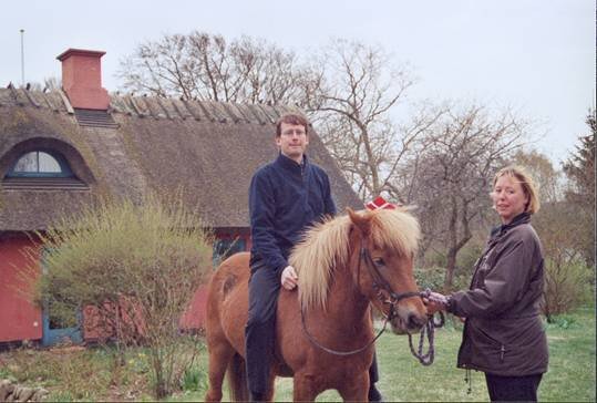 Her et billede af mig til hest i Havreholm. Hanne holder hesten, så der ikke sker mig noget.